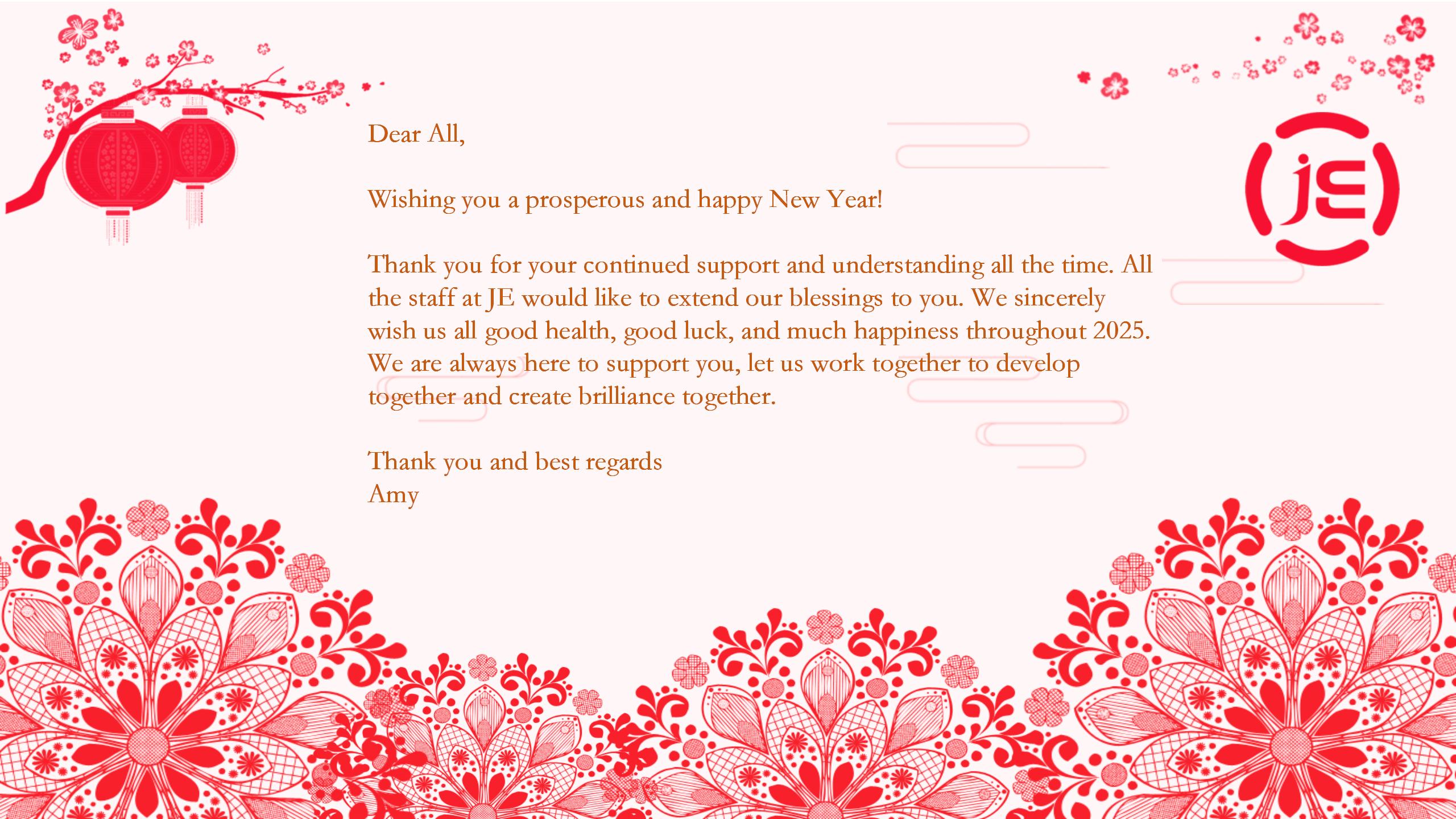 Prijazen opomnik:Naše kitajske novoletne počitnice so od 21. januarja do 7. februarja. Med prazniki ne bomo mogli dostaviti blaga. Po potrebi pripravite inventar vnaprej.