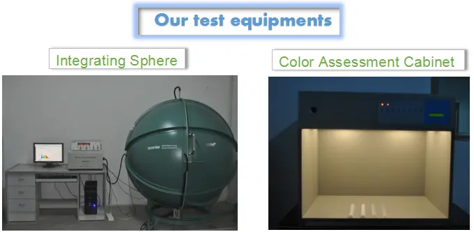 2 preskusne opreme s (integracijska krogla in omarica za ocenjevanje barv).